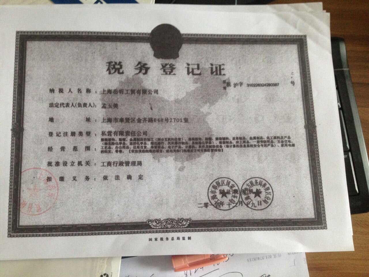 | 税务登记证.jpg | 2009-12-29 13:10 | 148K | ||